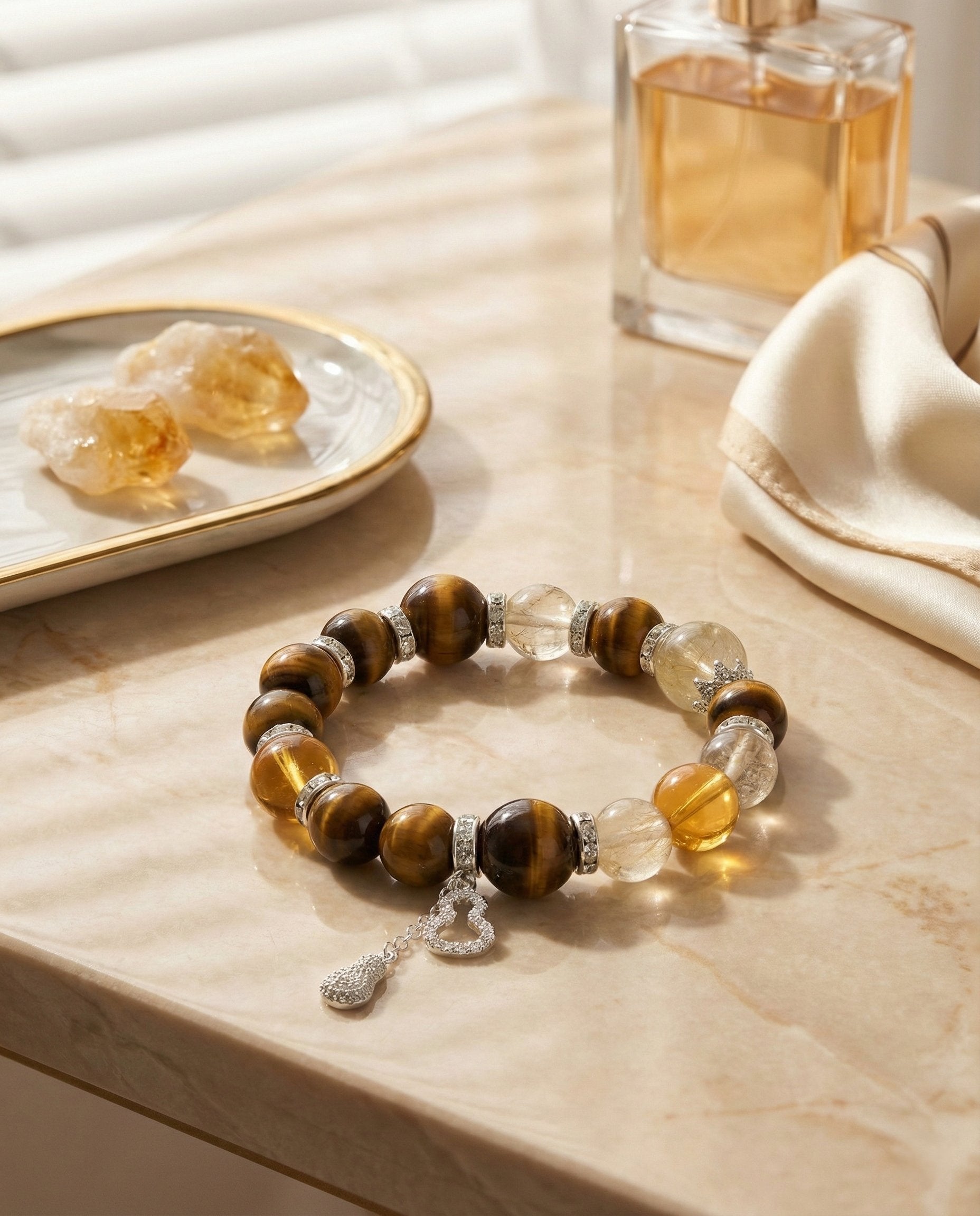 The Golden Ascendant Bracelet brings together Tiger’s Eye, Citrine, and Clear Quartz to help steady your focus, align intention, and move forward with quiet assurance — without force, without haste.