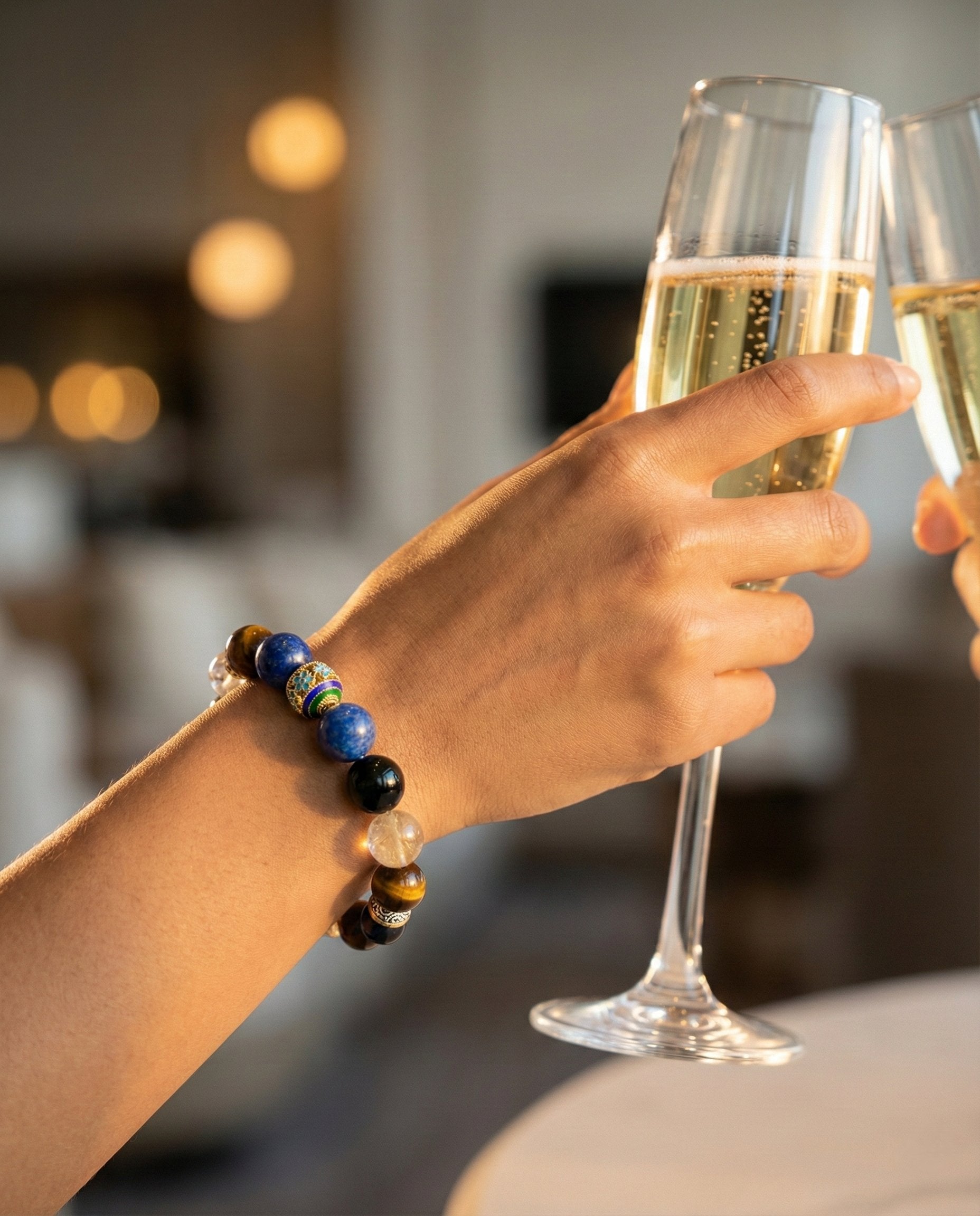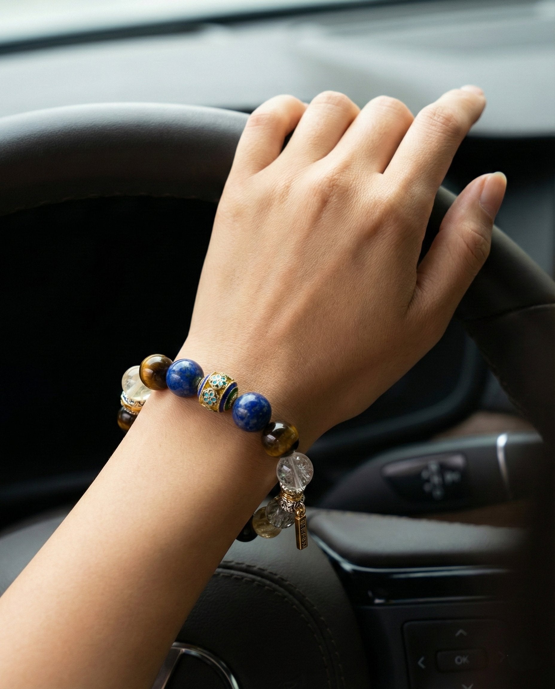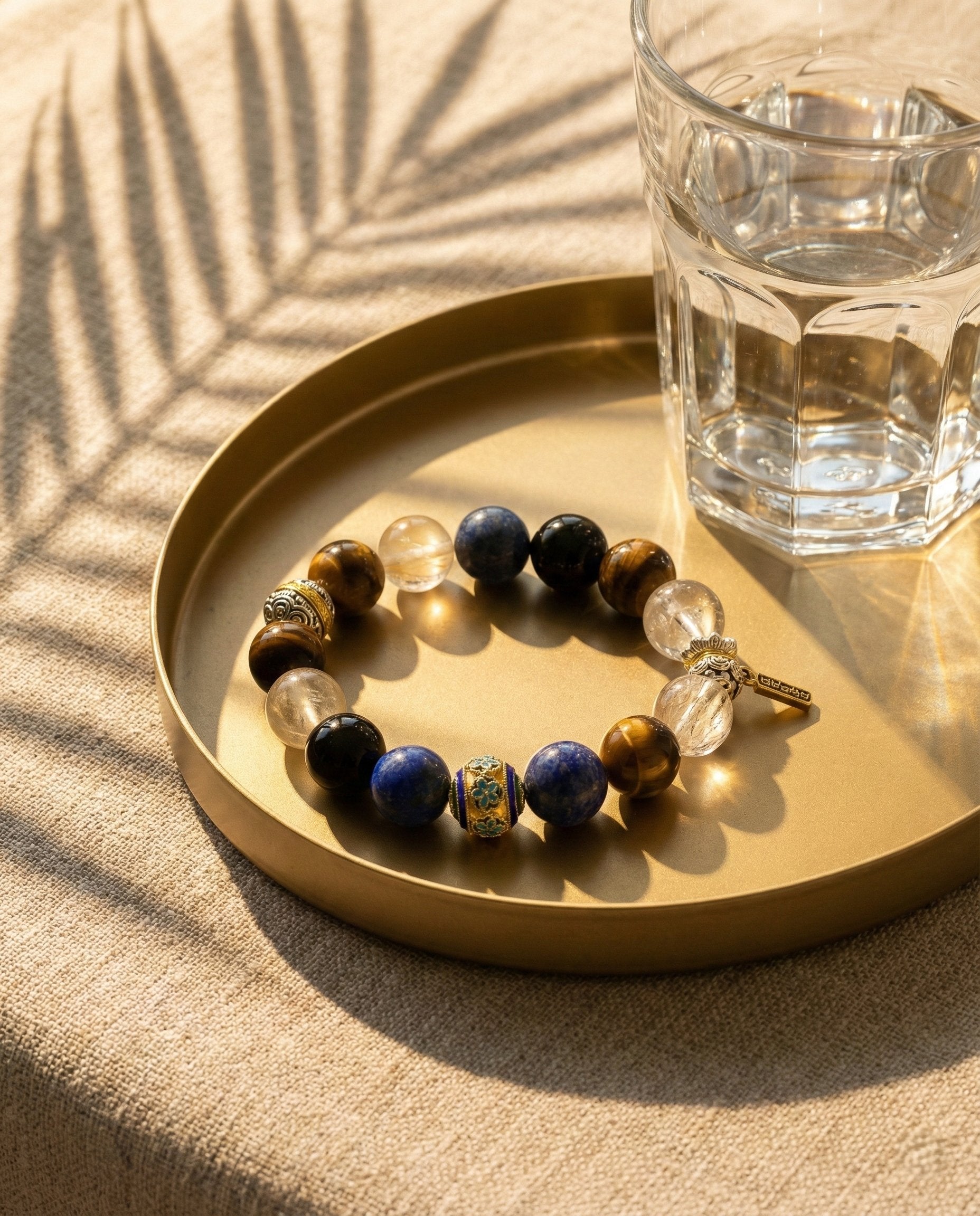 Forged for the Visionary. "The Sovereign" is not merely a bracelet; it is a wearable manifesto of power and clarity. Anchored by a handcrafted Cloisonné center and flanked by the ancient wisdom of Lapis Lazuli and the fierce courage of Tiger’s Eye, this piece is designed for those who build legacies. Whether you are closing a deal or navigating uncharted territory, let this energy serve as your compass.