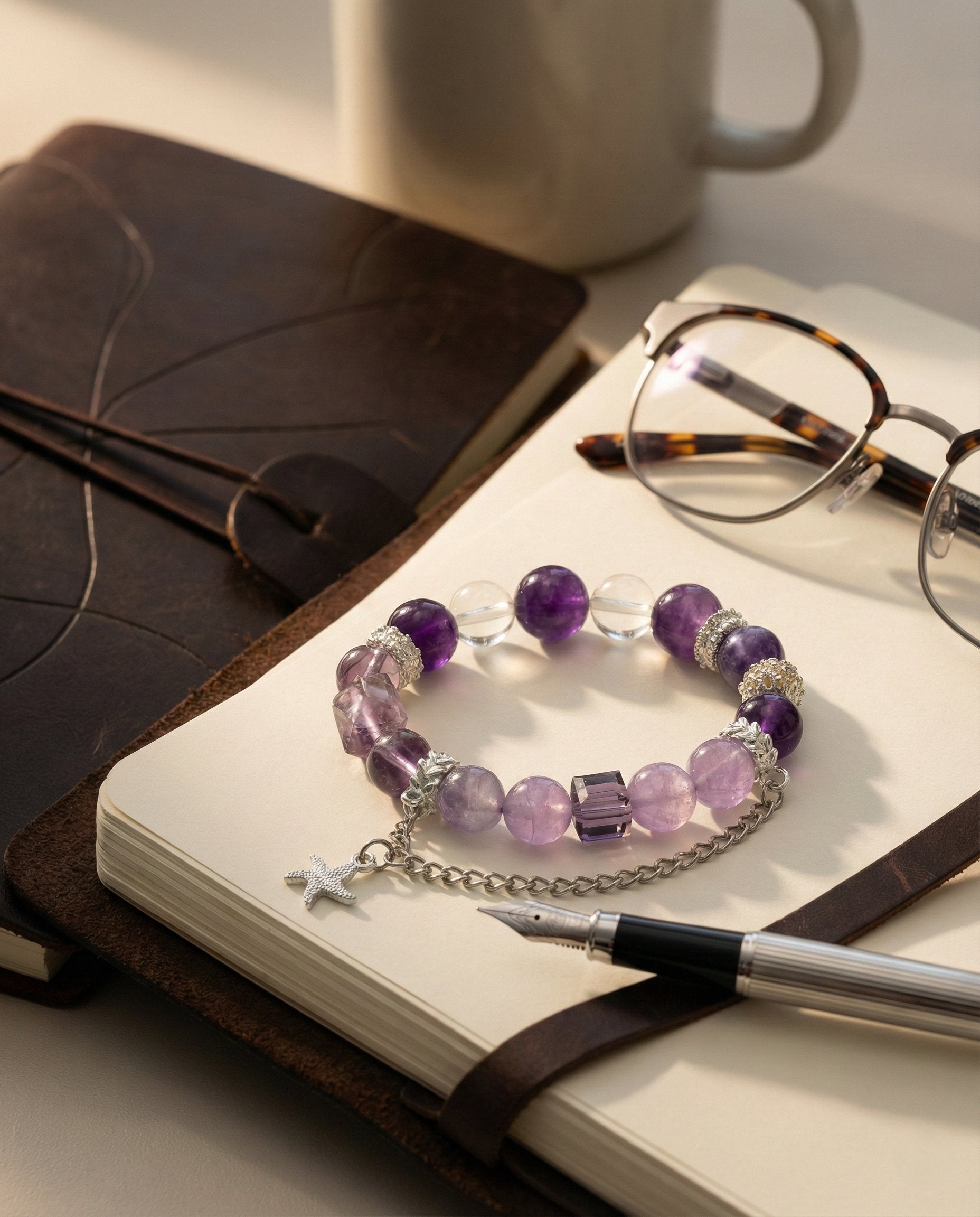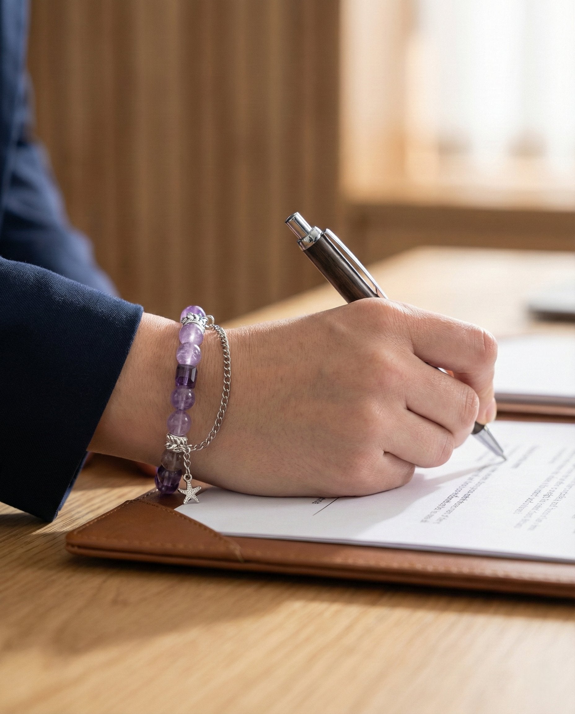 - Amethyst (The Stone of Clarity): Known for its calming and protective qualities, Amethyst supports mental clarity, strategic thinking, and emotional balance. It helps quiet mental noise so insight can surface with precision.